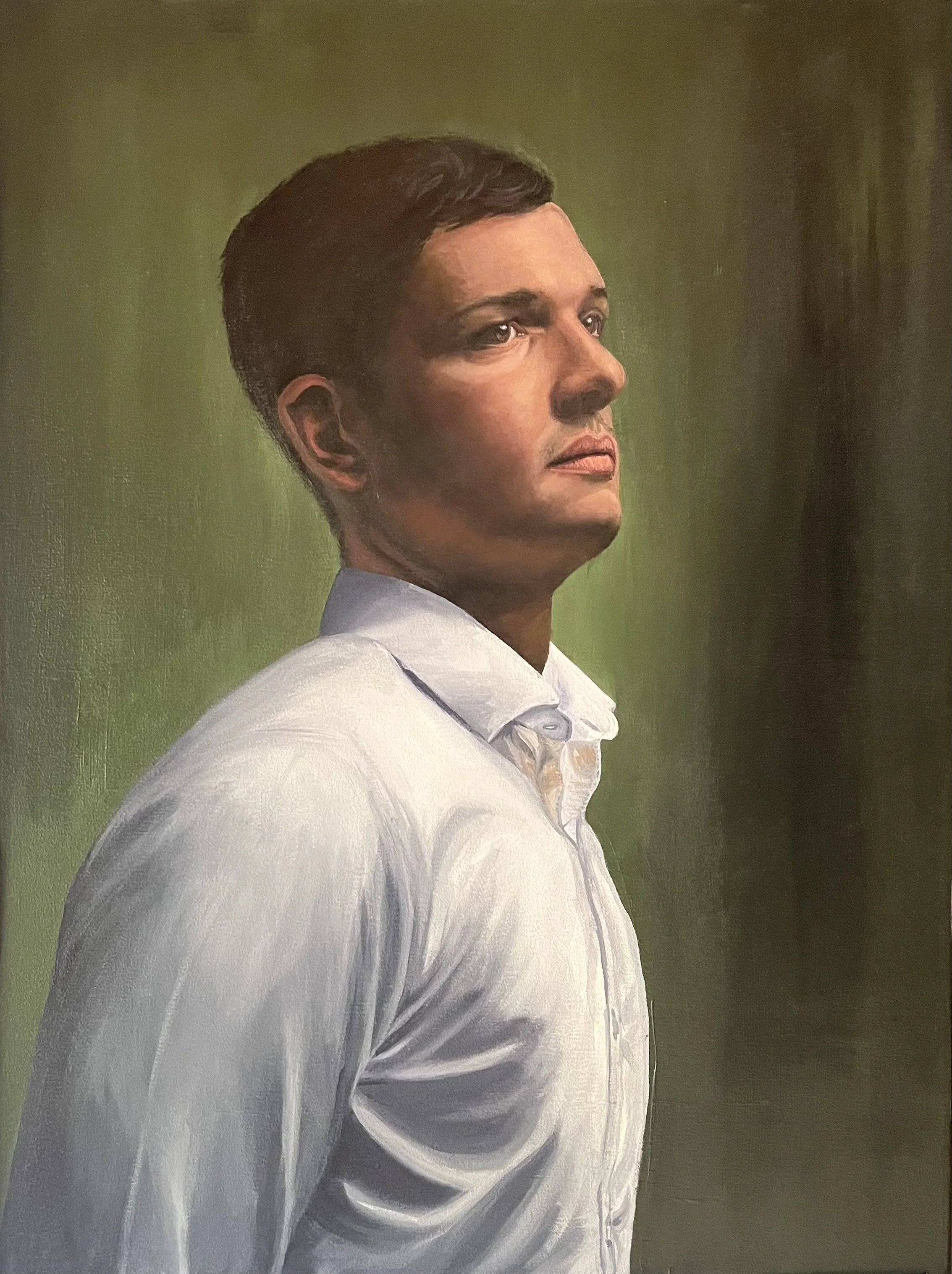 Man in white shirt. 60x50 cm Oil on Linen. SOLD